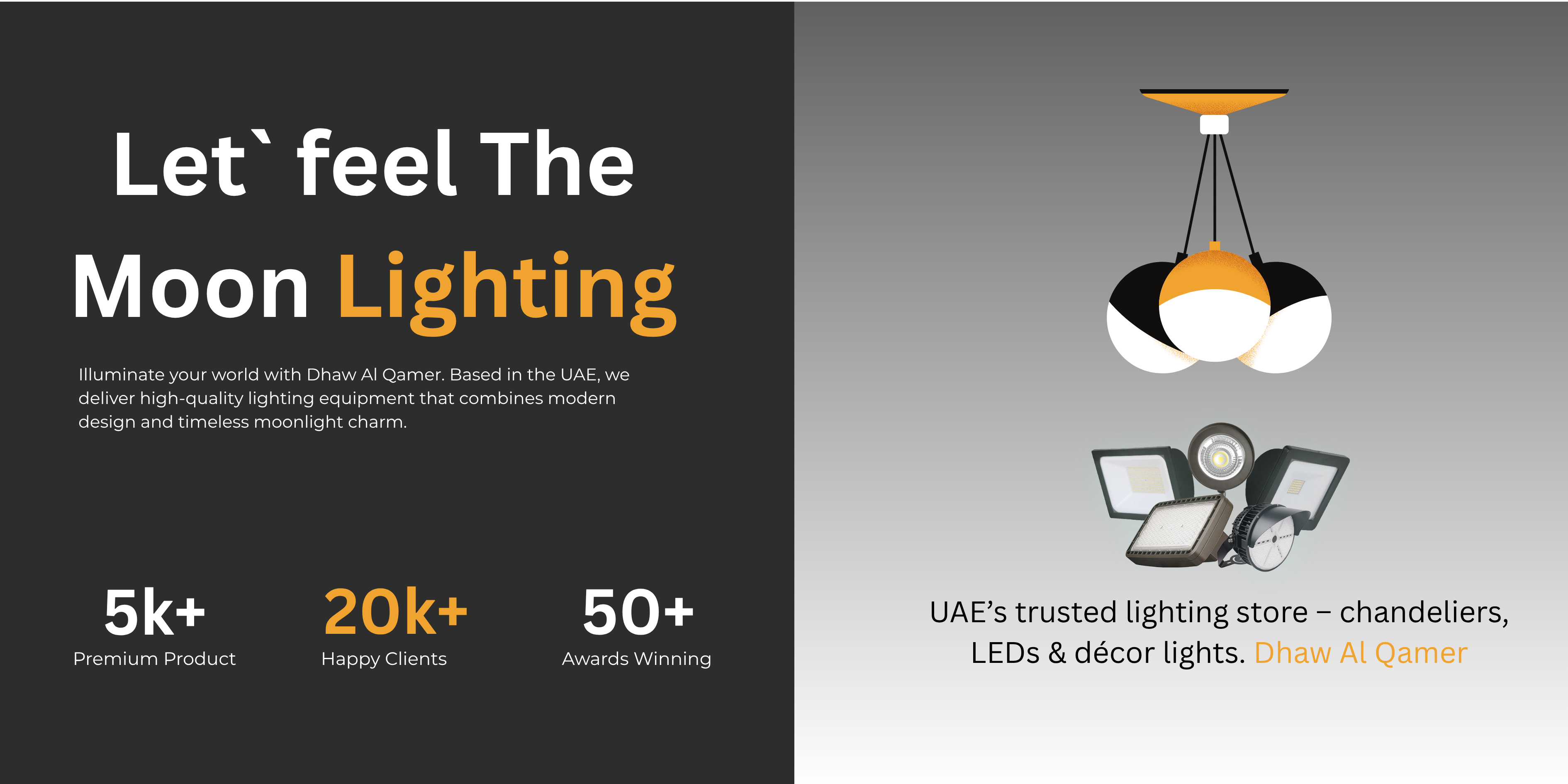 Let your interiors shine with the calm and beauty of moonlight. Dhaw Al Qamer indoor lighting captures warmth and serenity, turning every room into a cozy, welcoming retreat.