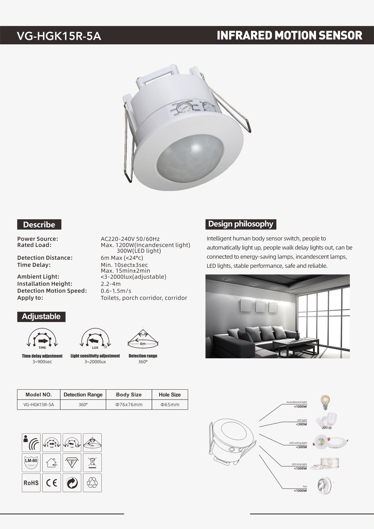 Infrared Motion Sensor Lights - VG-HGK15R-5A